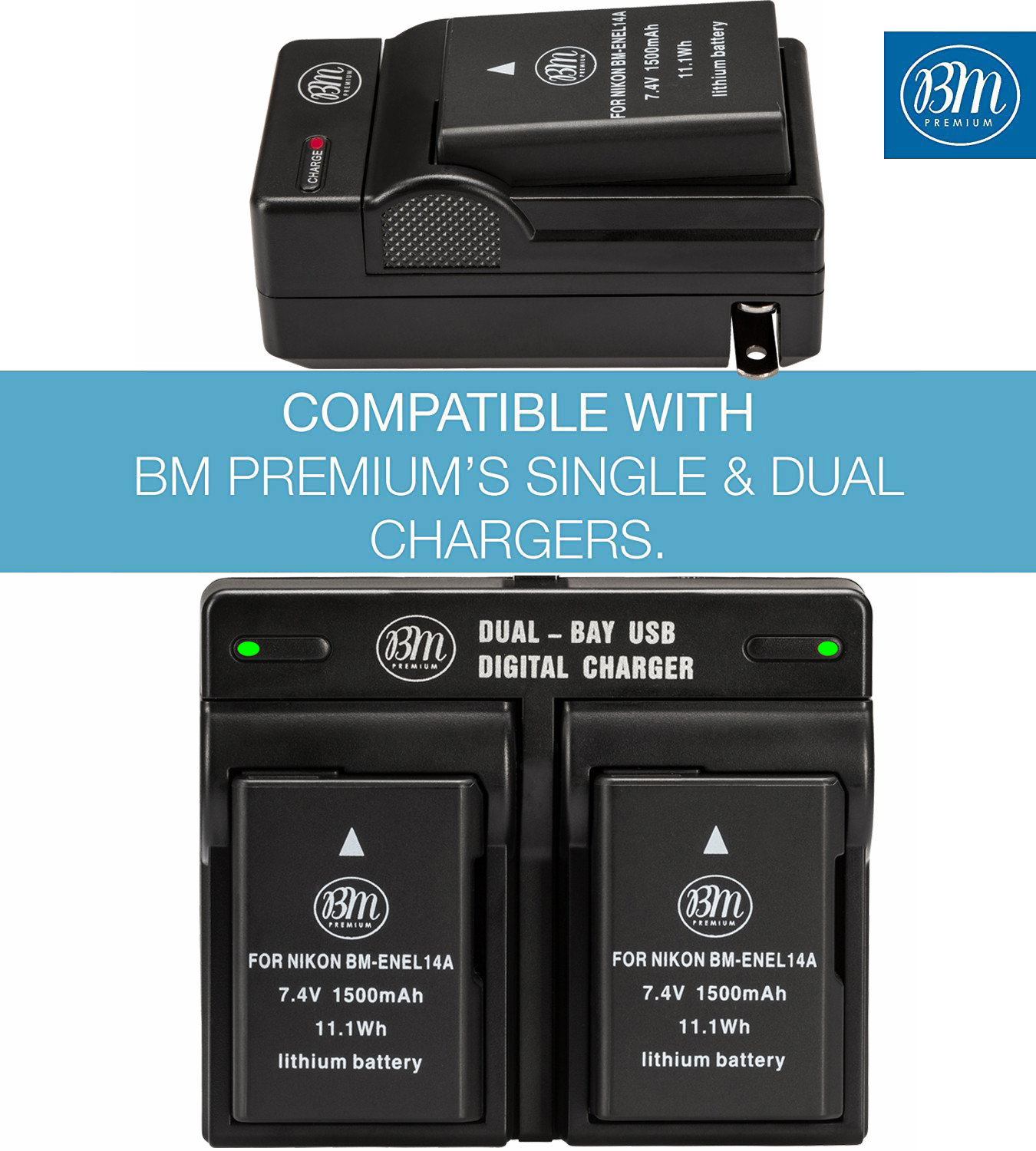 BM Premium 2X EN-EL14a Batteries for Nikon D3100, D3200, D3300, D3400, D3500, DF