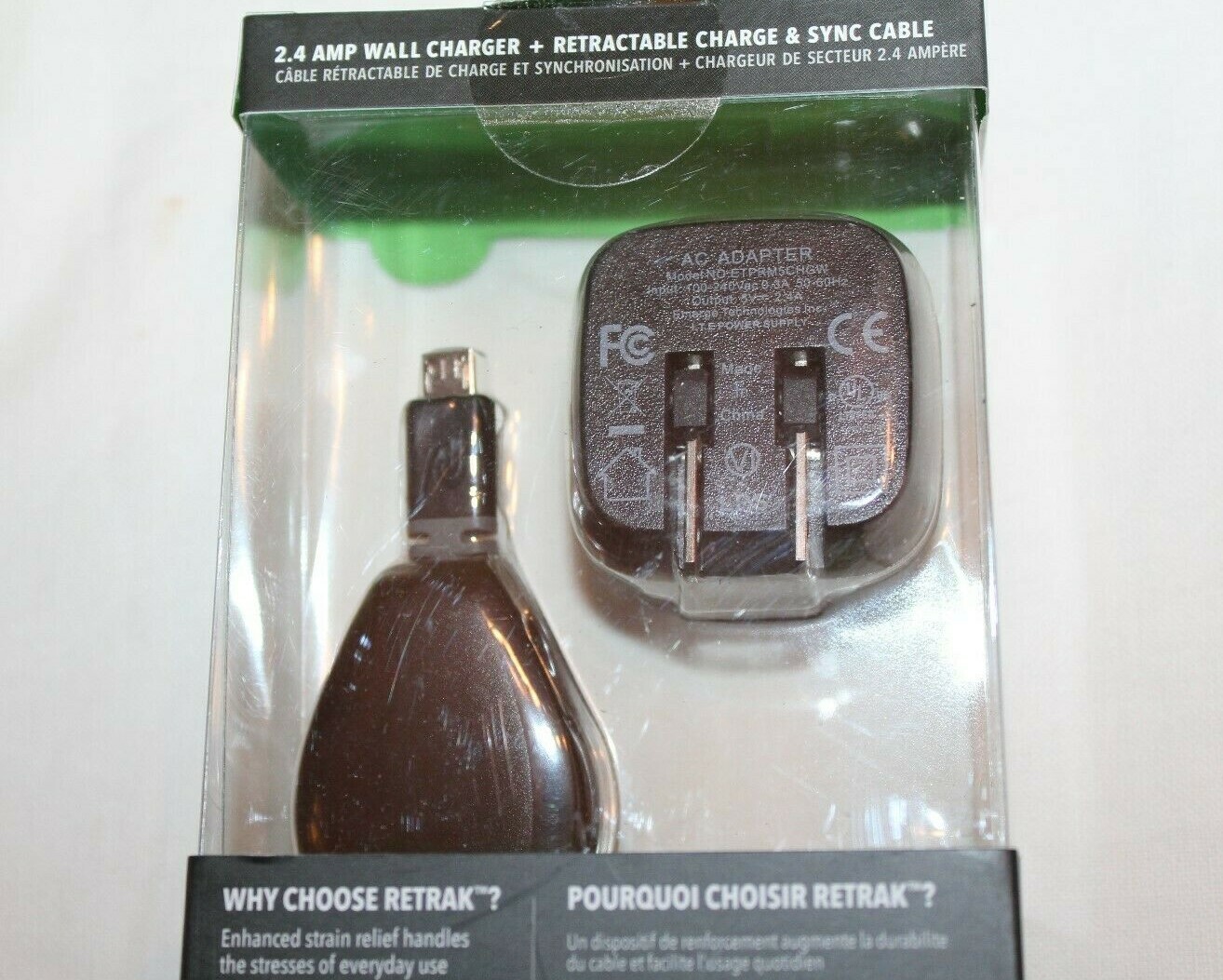 ReTrak PremierSeries 2.4 Amp Wall Charger Retractable Charge Sync Cable