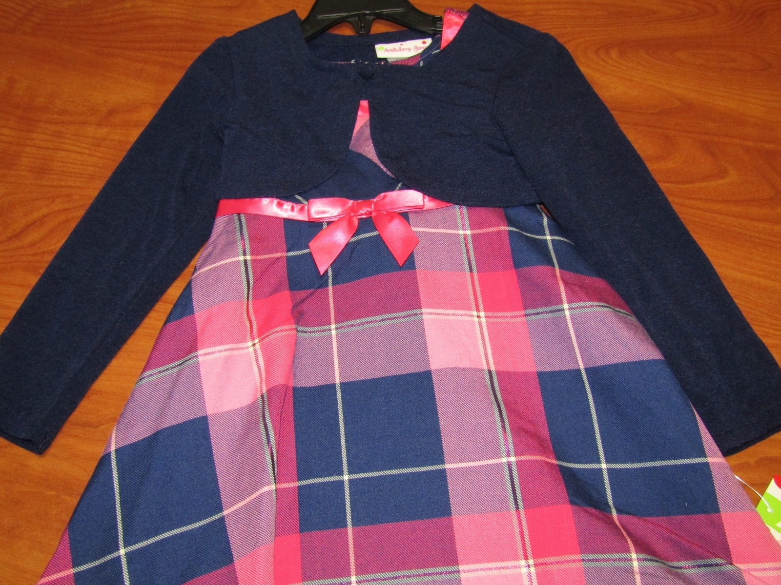 NEW ASHLEY ANN GIRLS NAVY BLUE PLAID DRESS SZ 5