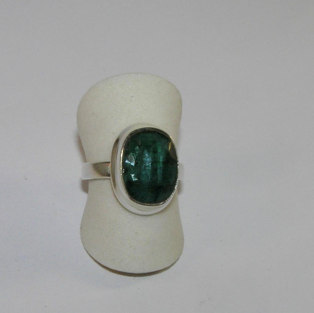 как выглядит Genuine Emerald Faceted Oval Ring with Border 925 Sterling Silver Size 7.5 фото