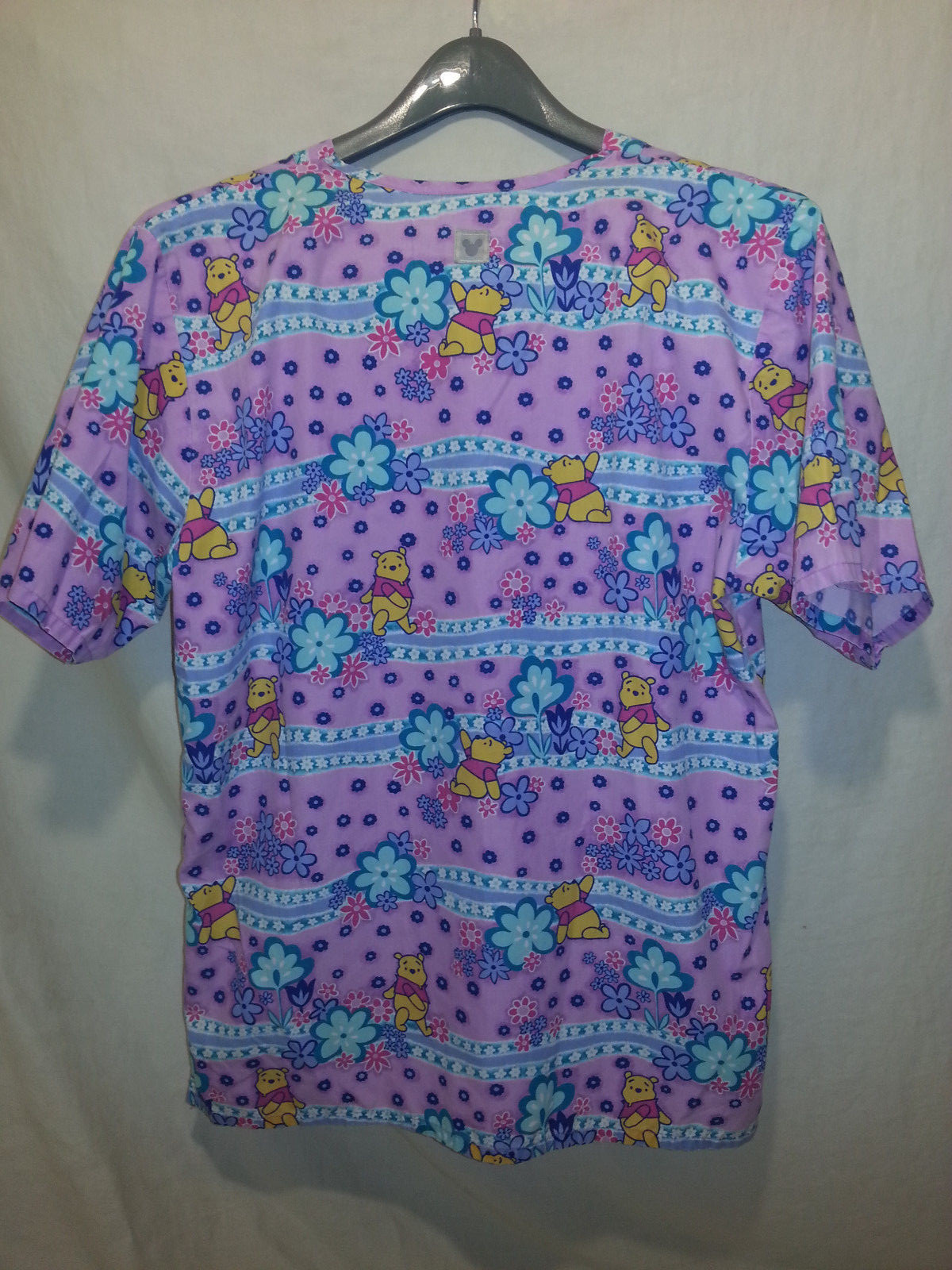 Disney Women's Small Scrub Top Purple Flowers Winnie The Pooh EUC
