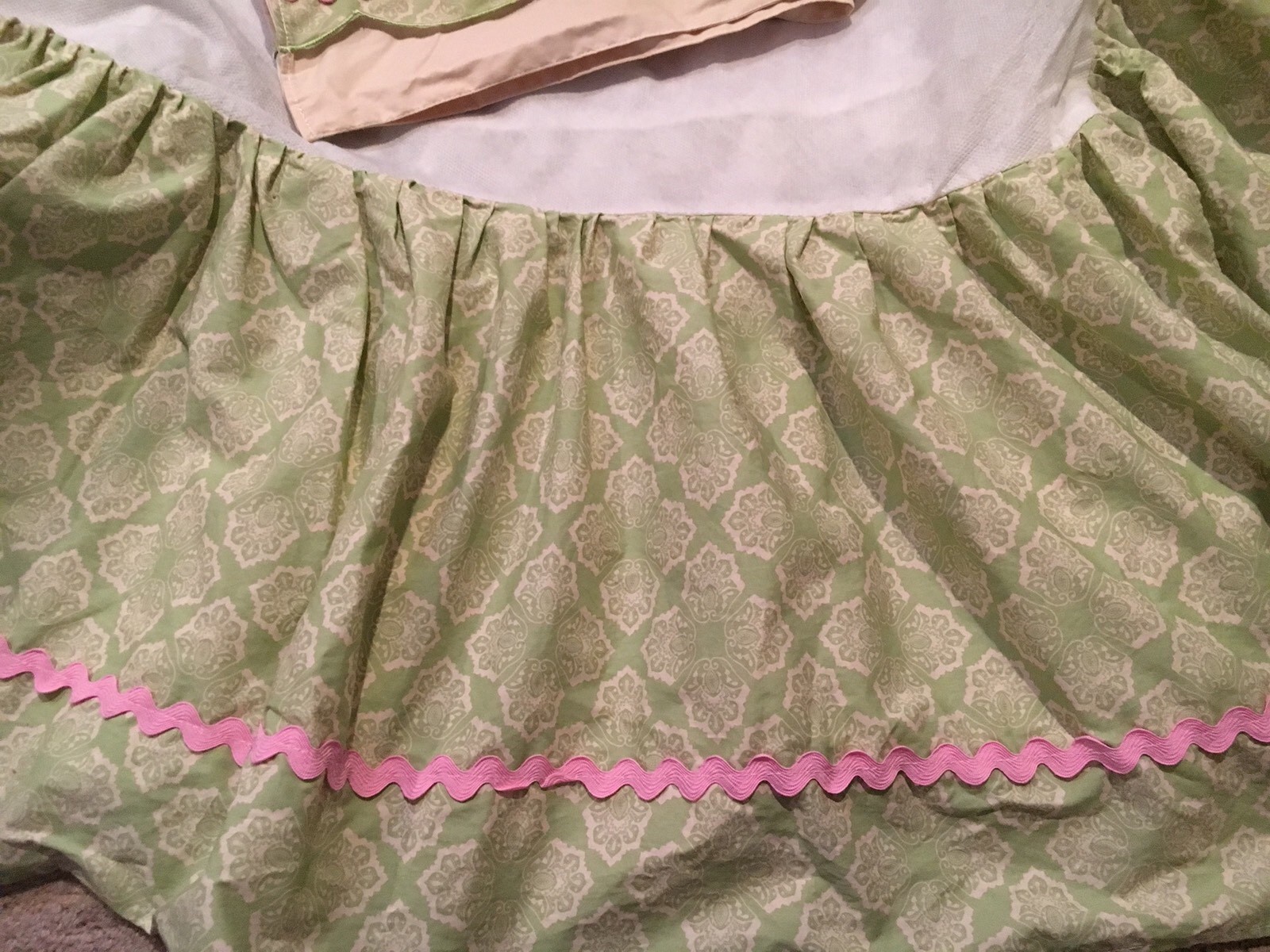 как выглядит Jill Mcdonald Green And Pink Crib Skirt And Window Valance фото