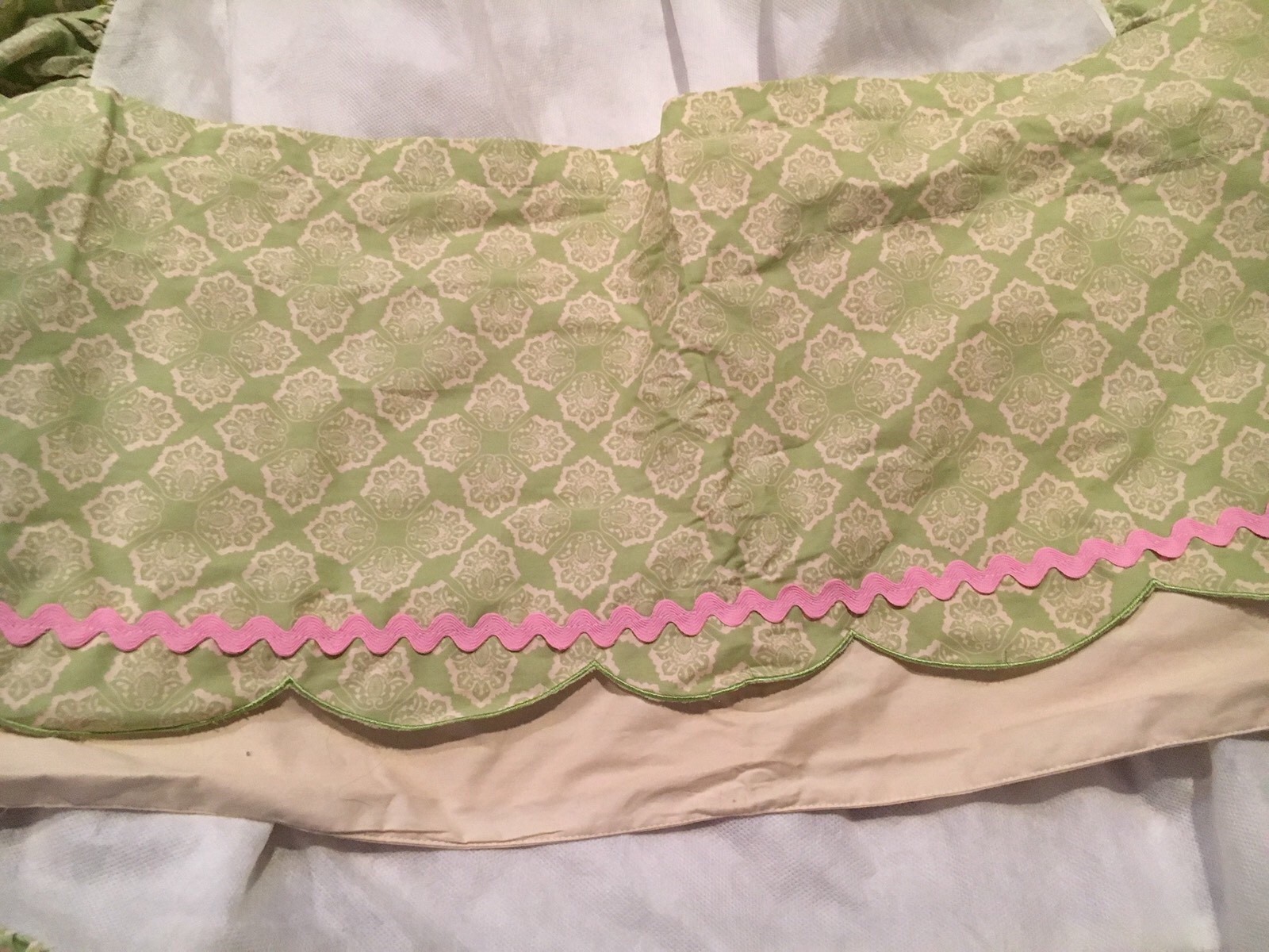 Jill Mcdonald Green And Pink Crib Skirt And Window Valance