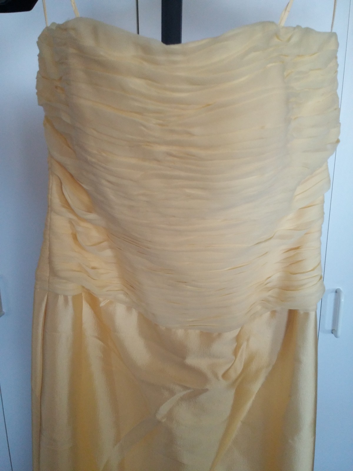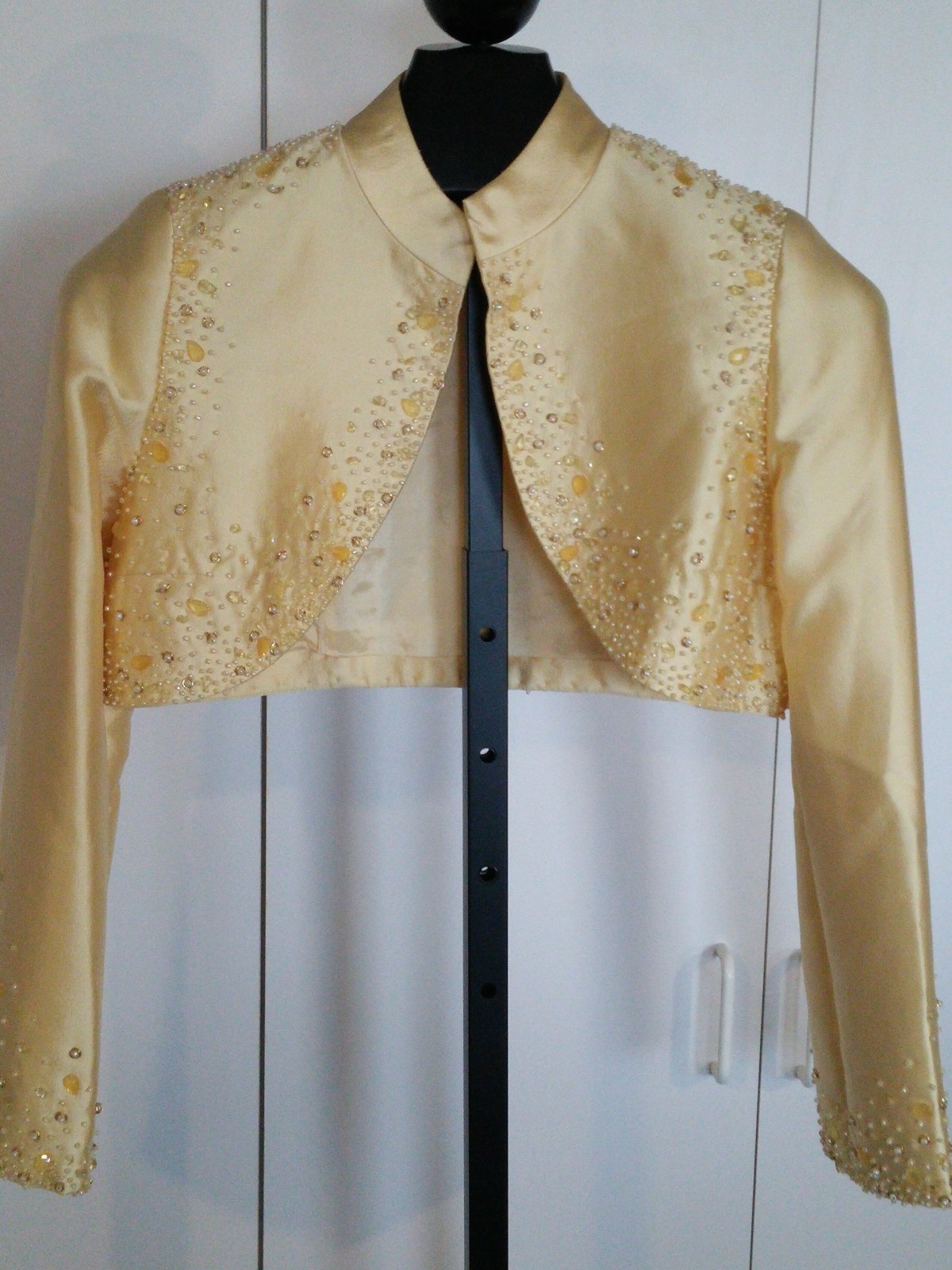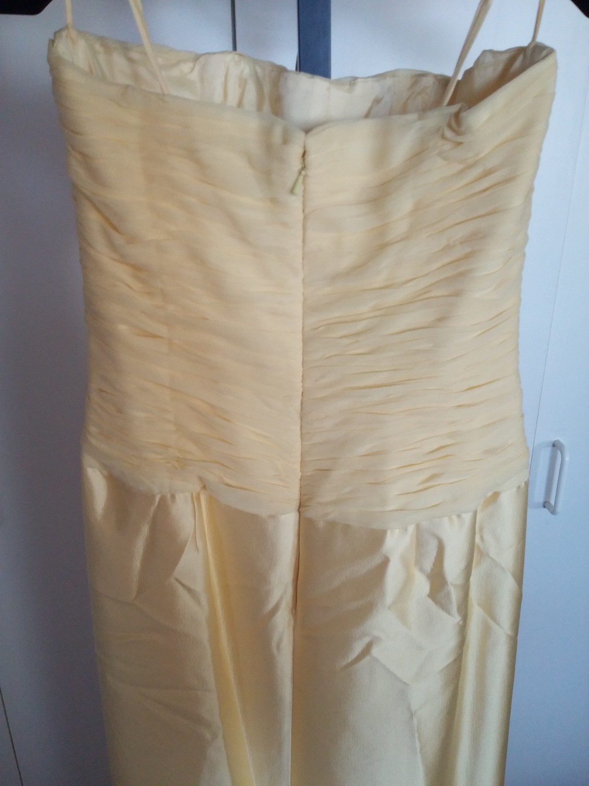 как выглядит JOVANI LADIES PALE YELLOW FULL-LENGTH GORGEOUS STRAPLESS GOWN-8-LS BEADED JACKET фото