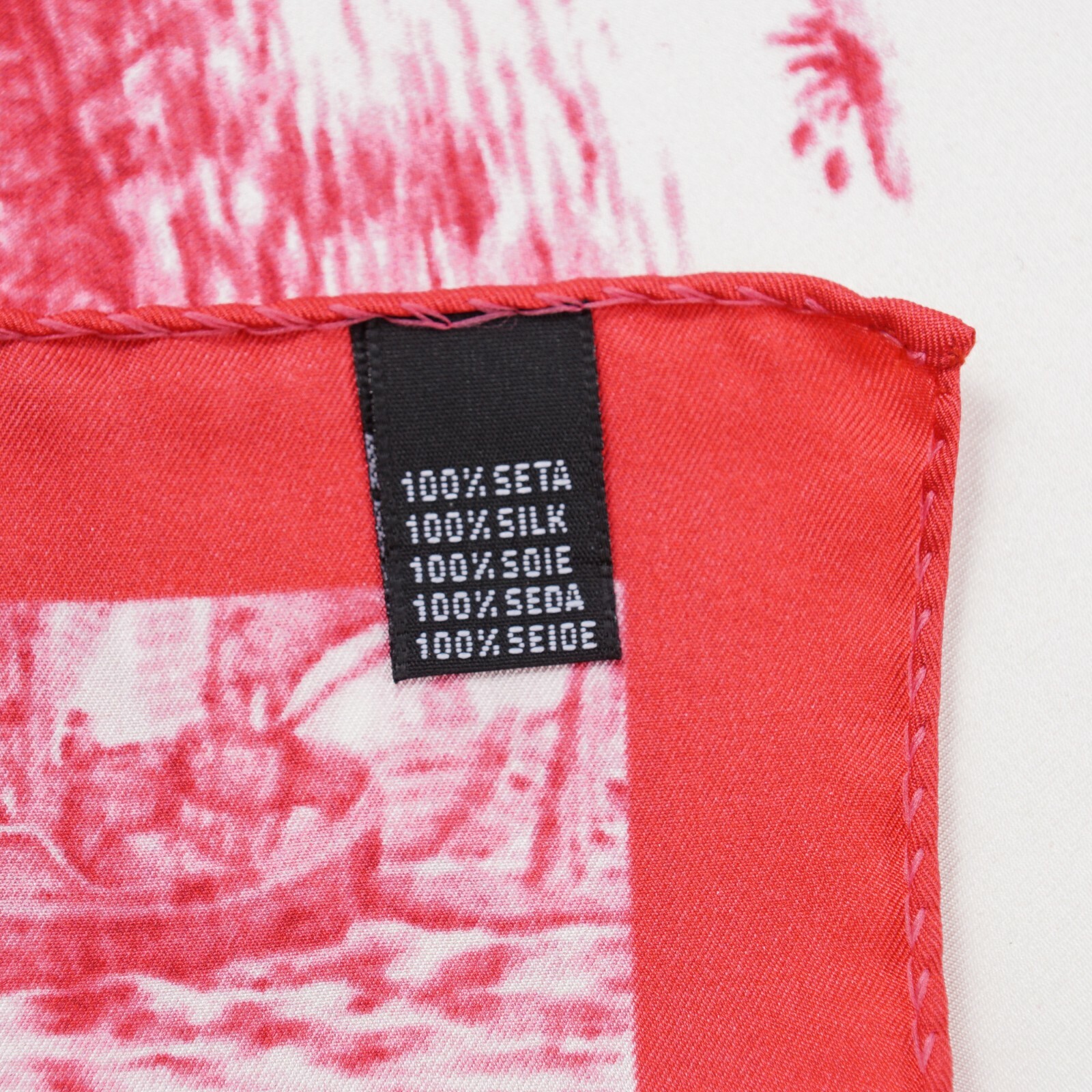Kiton Napoli Strawberry Red Naval Ship Battle Print Silk Pocket Square