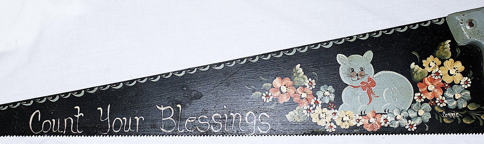 Original Hand Painted Cat Kitty Hand Saw Vintage
