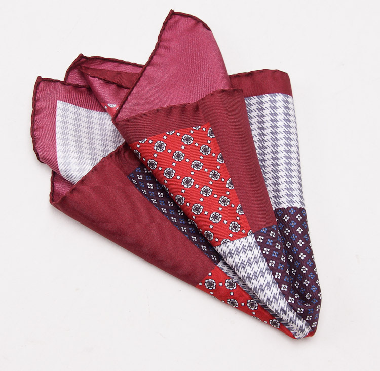New 130 BATTISTI NAPOLI Burgundy Red Multi Pattern Printed Silk Pocket Square