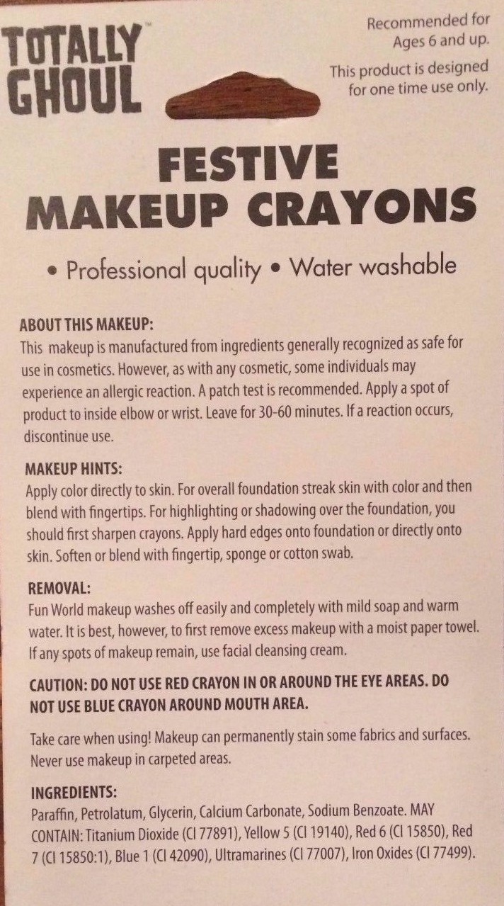 Halloween Makeup Festive Ten 10 Crayons Black White Red Yellow Blue WASHABLE