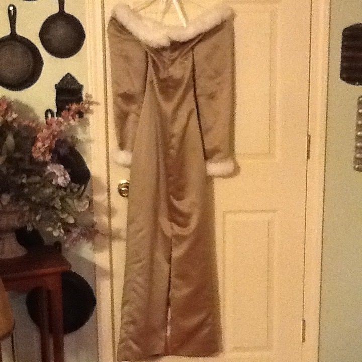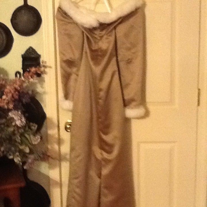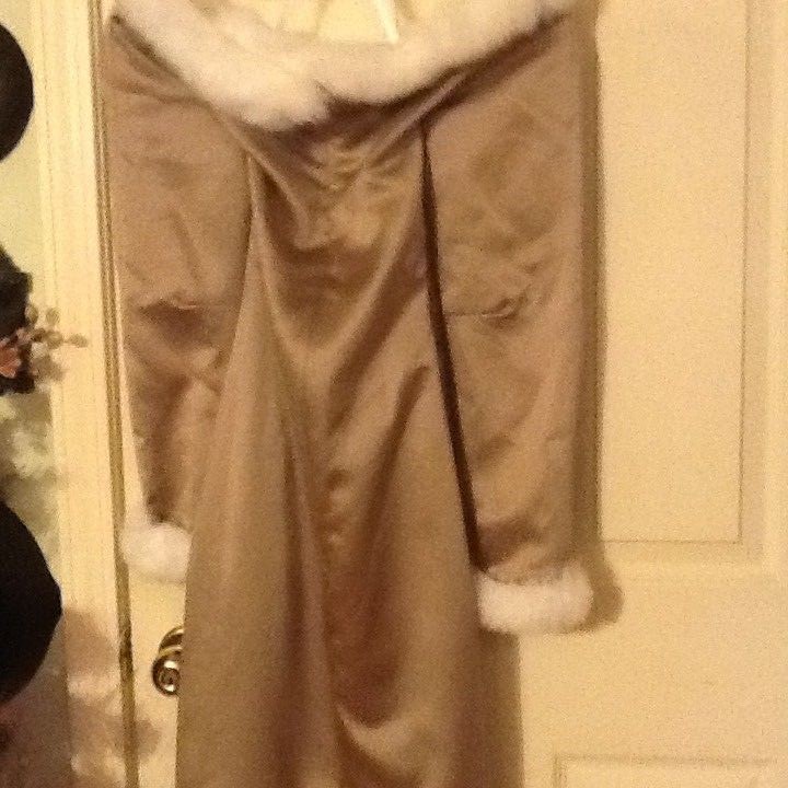 как выглядит Watters Watters Formal Dress Faux Fur Collar sleeves Brown Satin Vintage SZ 2 фото