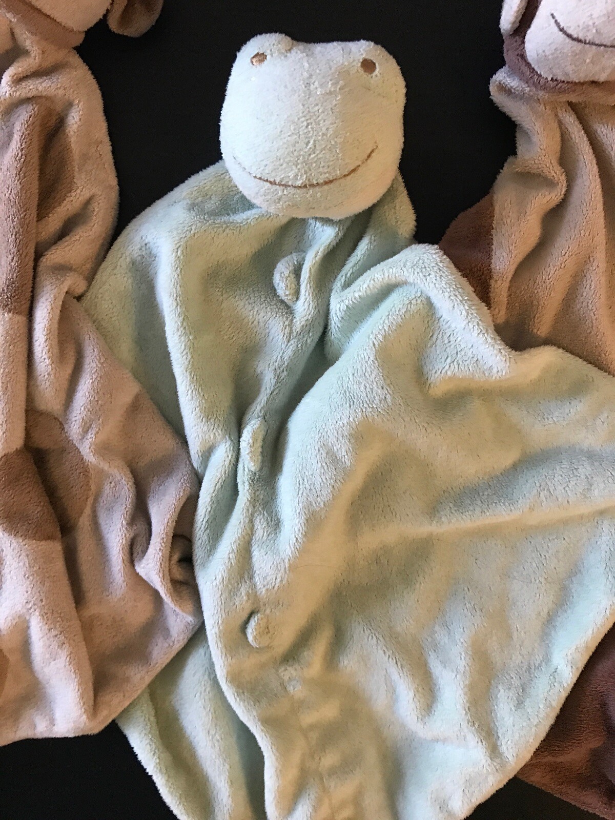 Baby Lovies Doggie Froggy Monkey Brown Green Sleep Cuddle Blanky Thick Soft Crib