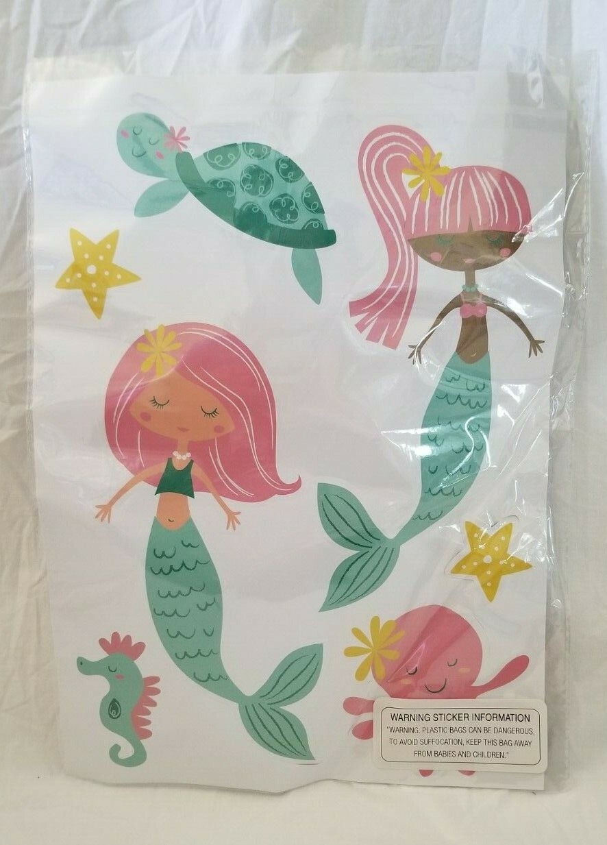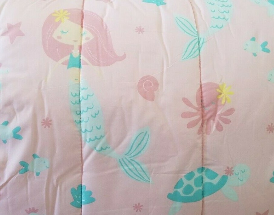 5 pc Cloud 9 Mermaid Full Comforter, Sham, Deco Pillow Wall Decal Set NIP