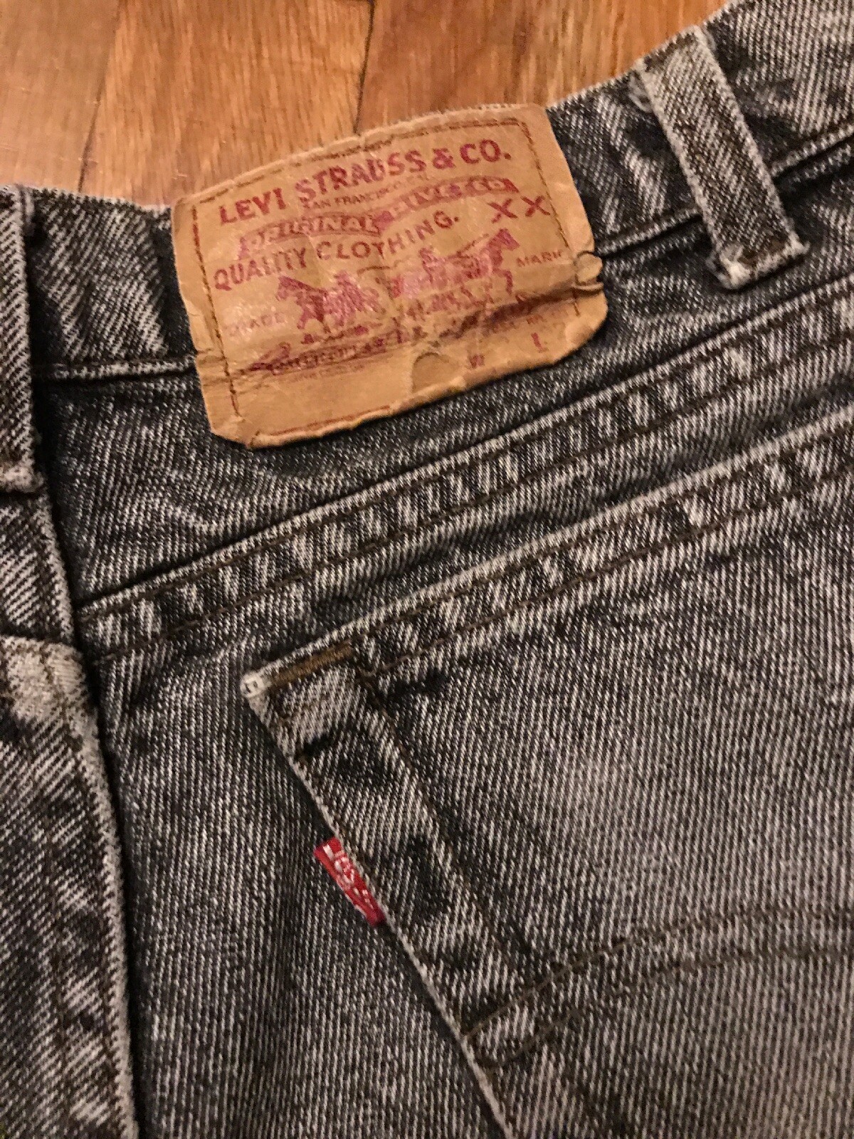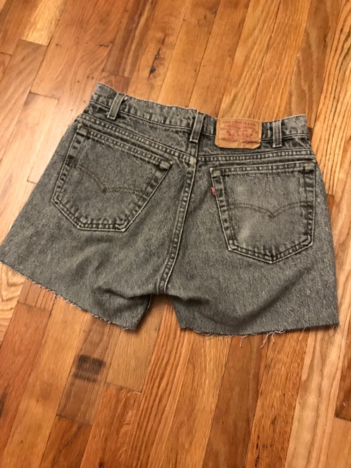 как выглядит Vtg Levis 80s Red Tab Grey Cutoff Beach Shorts фото