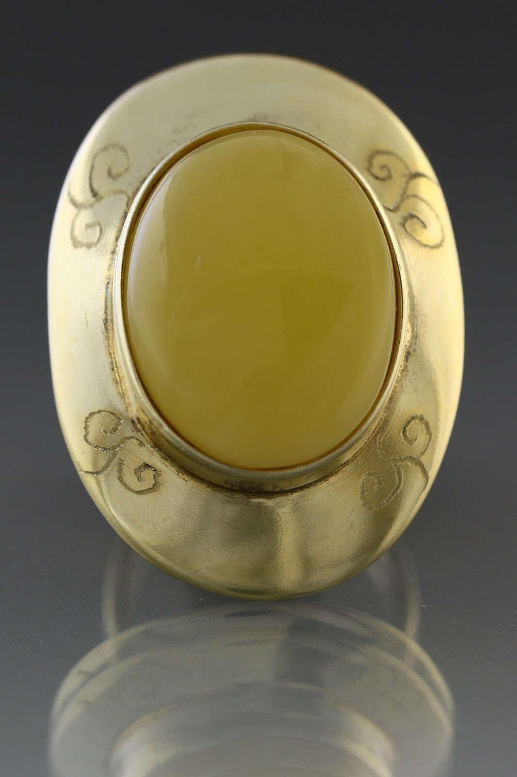 как выглядит Egg Yolk Genuine BALTIC AMBER Gold Plated Silver Adjustable Ring 11.9g 190821-1 фото