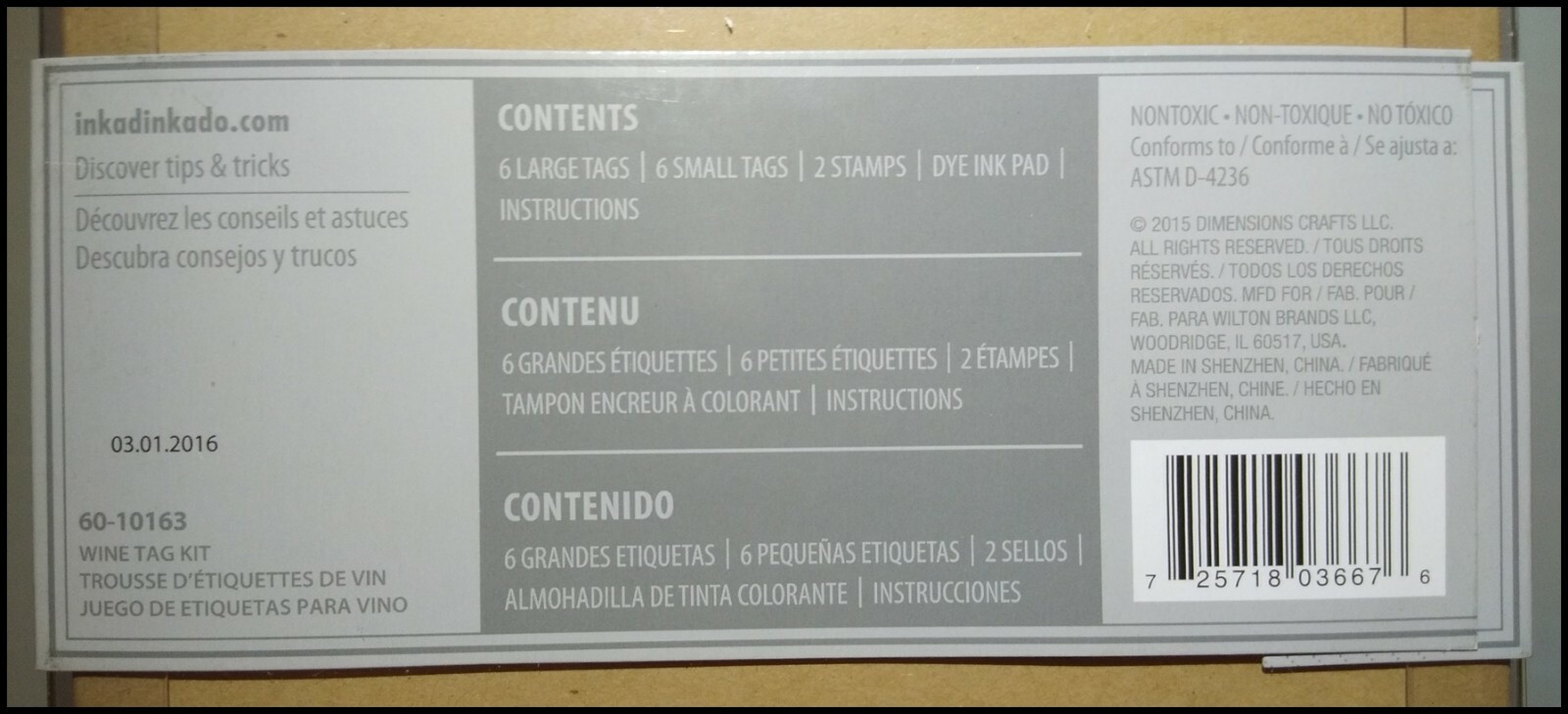 WINE TAG KIT Inkadinkado 15 pcs NEW