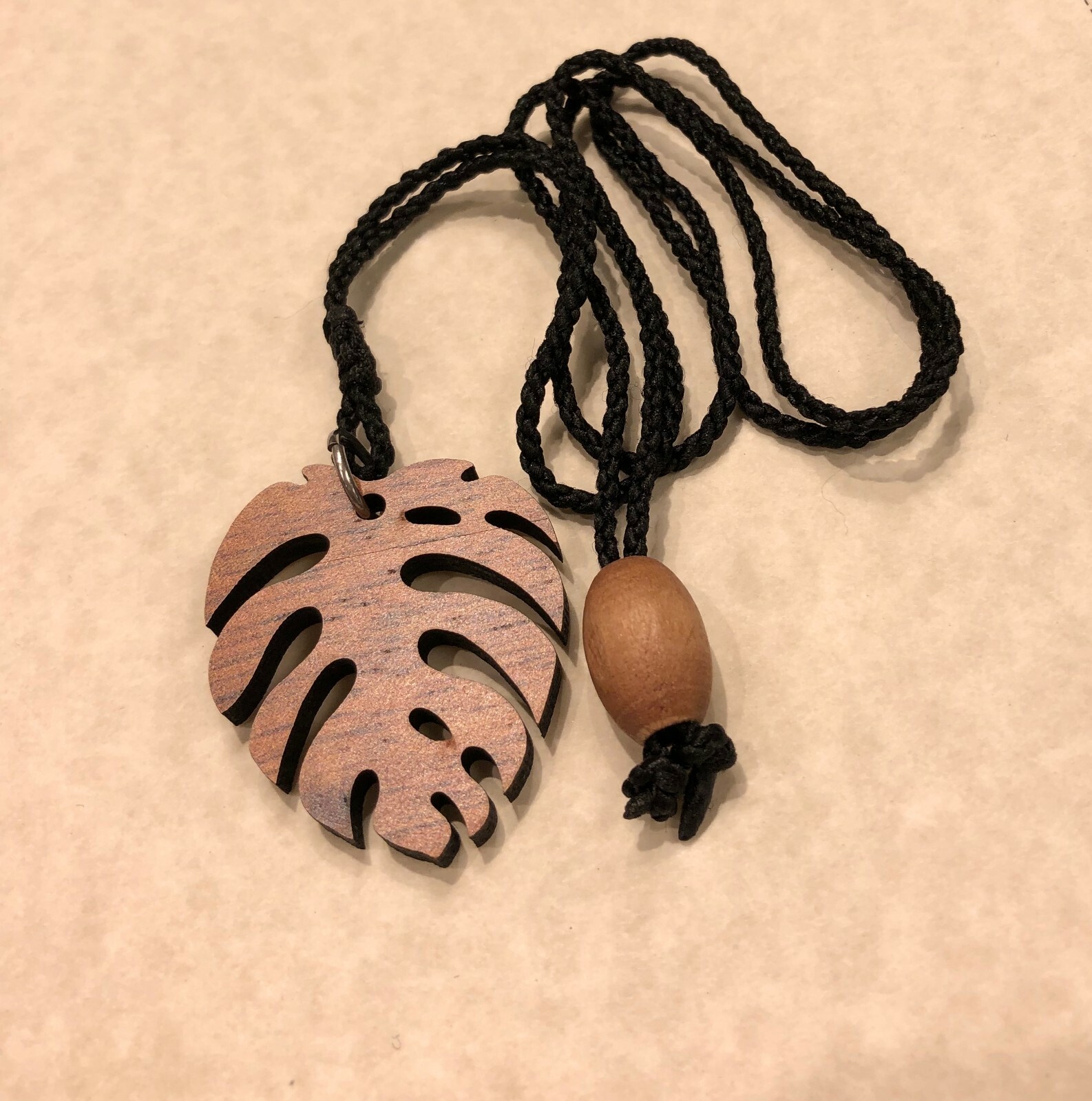 Hawaiian Jewelry Koa Wood Monstera Pendant Necklace w/ adjustable cord 28"