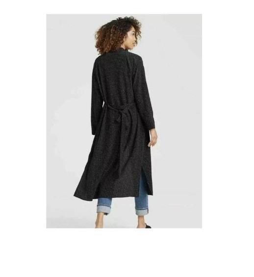 как выглядит EILEEN FISHER BLACK MORSE CODE PRINT KIMONO CARDIGAN BELTED BLACK JACKET XS фото