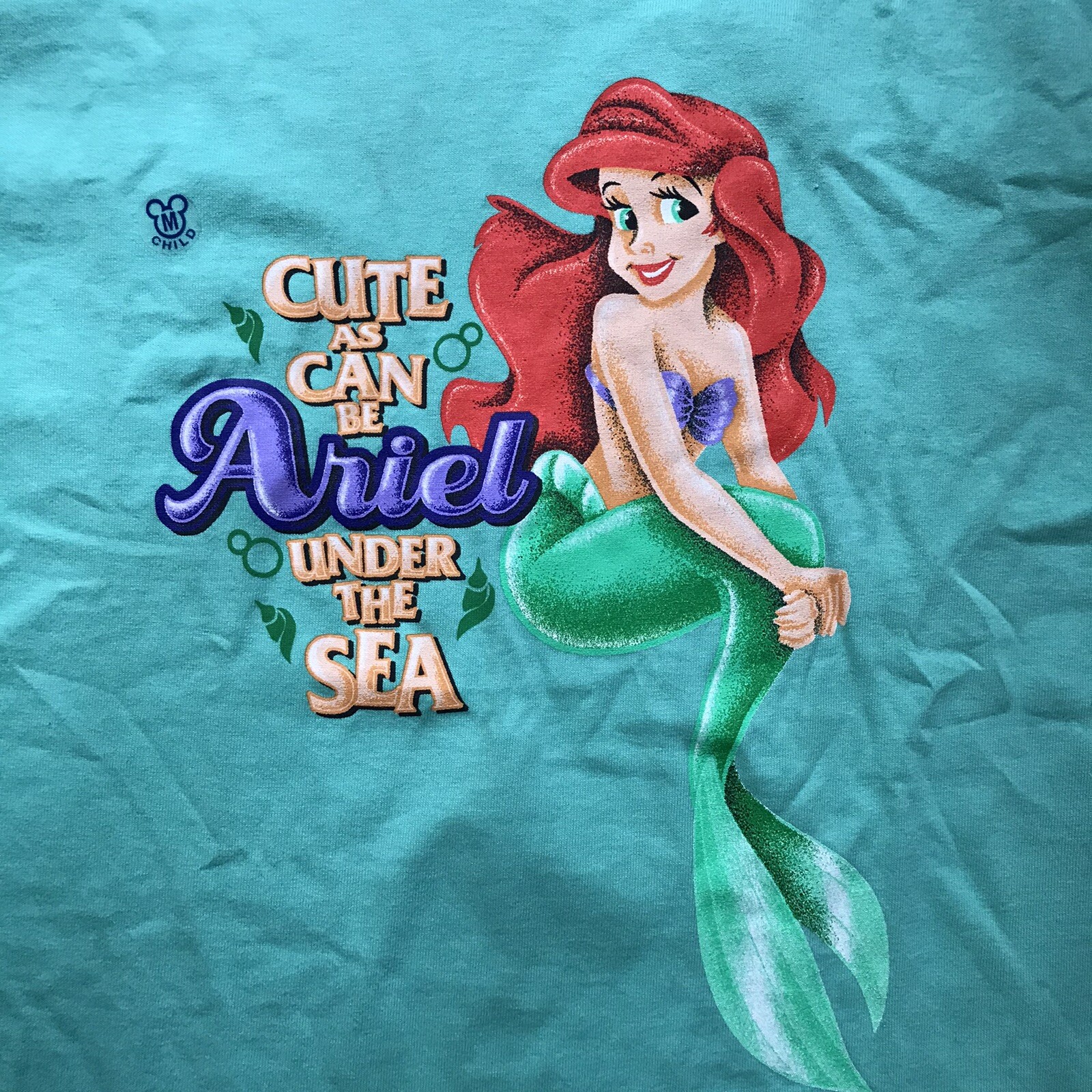 Disney Vintage 90's Girls Youth Medium 6/7 Ariel Editorial Print Cotton T Shirt