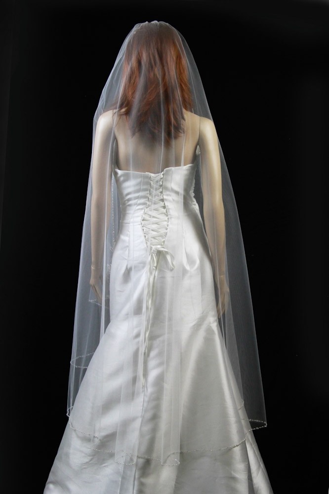 Bridal Wedding Veil White 1 Tier Long Knee Length With Floral Motif Edge