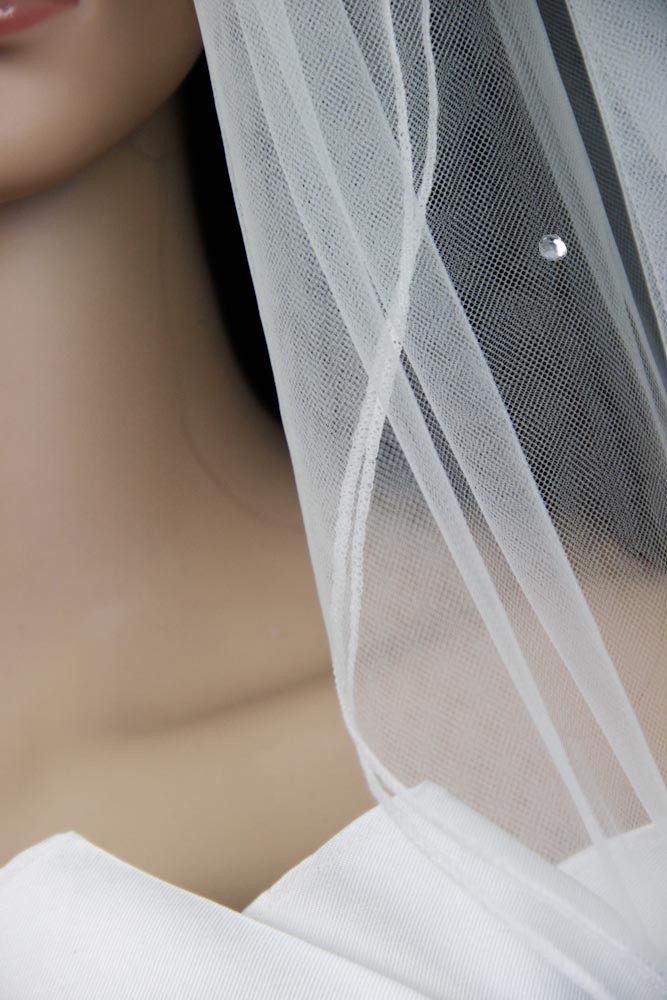 Bridal Veil White 2 Tiers Elbow Length Pencil Edge With Scattered Rhinestones