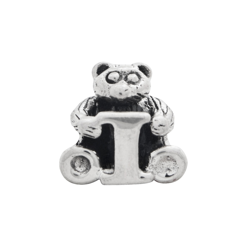 Letter I Teddy Bear Kids Bead .925 Sterling Silver Antiqued Reflection Beads