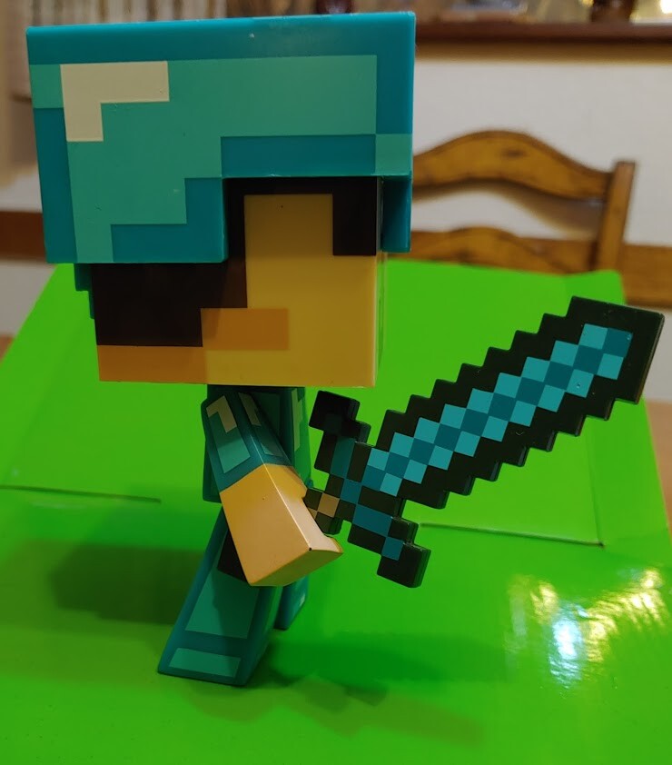 как выглядит Minecraft Diamond Steve 6" Plastic Poseable Figure by Notch Mojang Sword Helmet фото