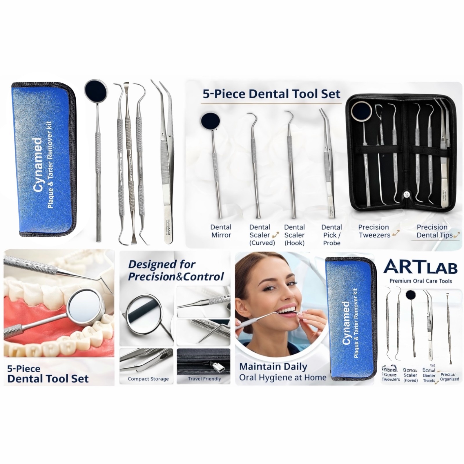 New Dental Set Kit 5pc Scaler Pick Tools Deep Cleaning Professional Oral Hygeine