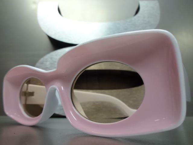 OVERSIZED EXAGGERATED Funky Retro SUN GLASSES Thick White Pink Frame Oval Lens