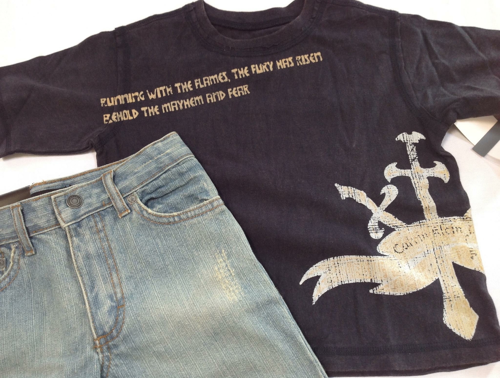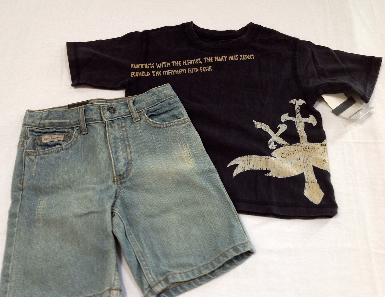 NWT boys Calvin Klein Jeans denim shorts navy tee shirt set lot outfit gift 3T