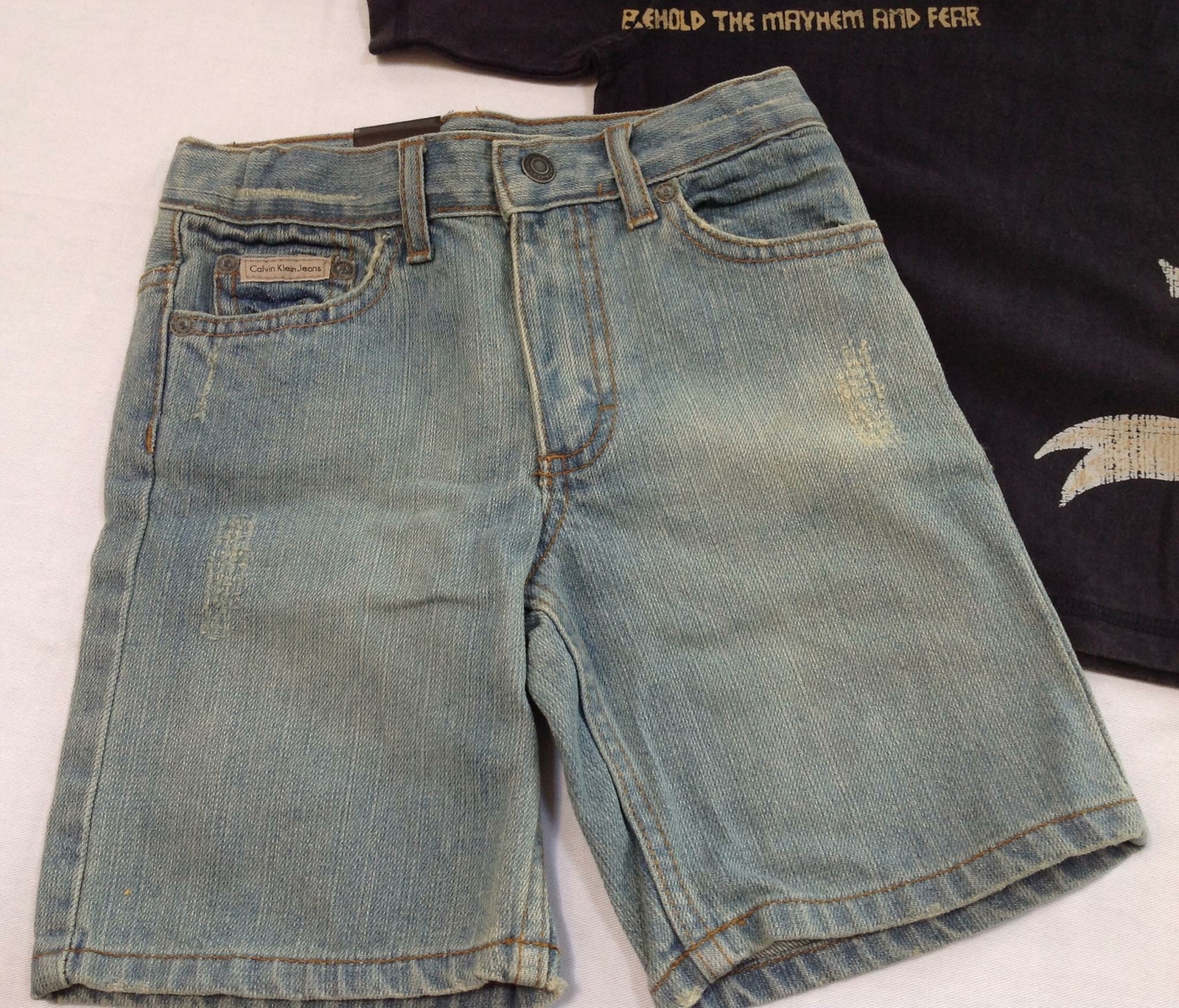 как выглядит NWT boys Calvin Klein Jeans denim shorts navy tee shirt set lot outfit gift 3T фото
