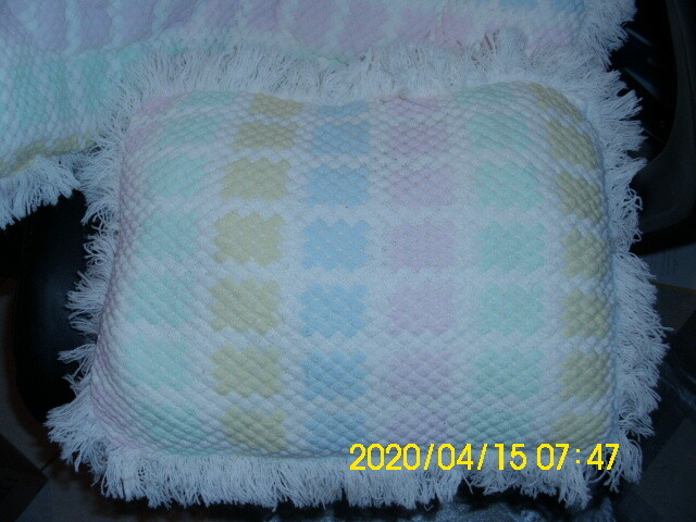 как выглядит Vintage Baby Crib Bedding Quilt Pastel Colors fringed фото