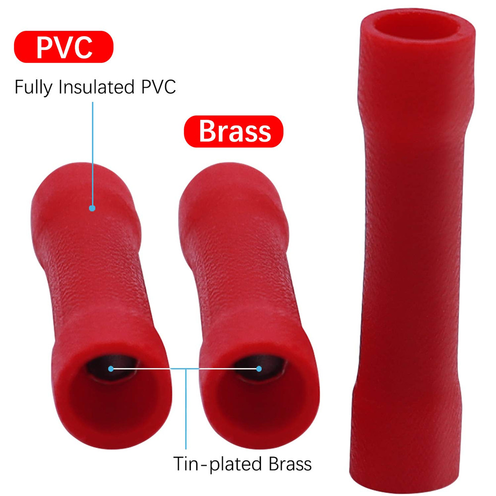 100PCS Red Wire Butt Connectors 22-18 Gauge AWG Ga Car Audio Terminals New