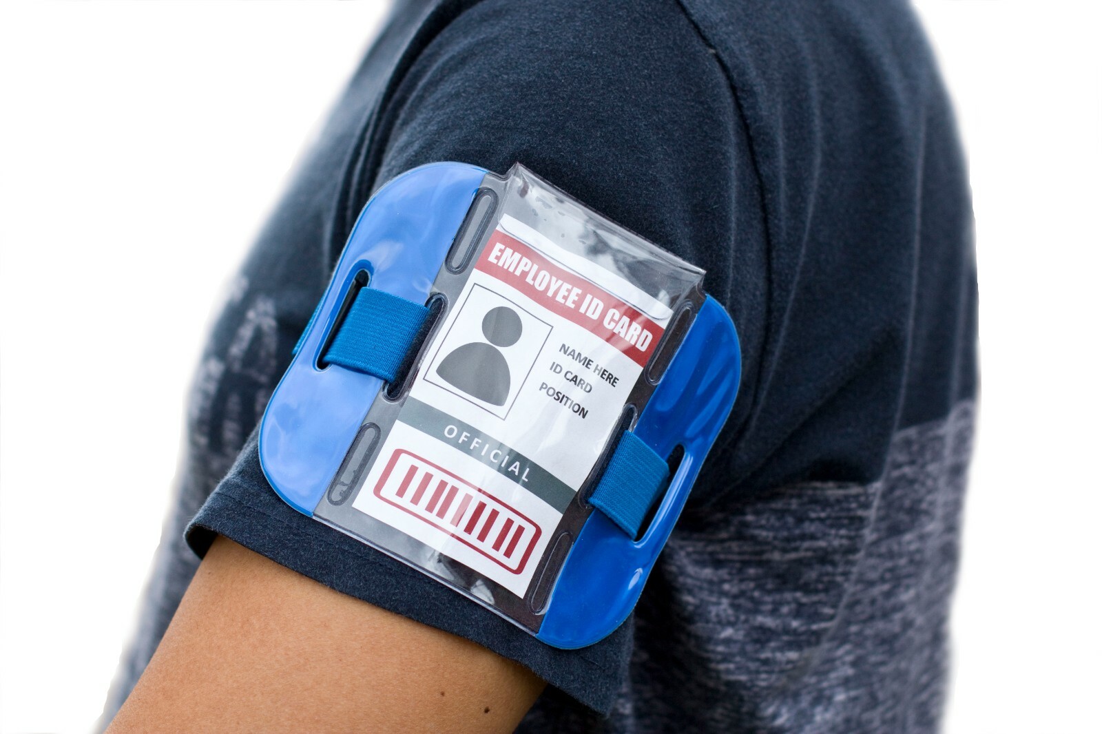 Lot 50 Reflective Blue Arm Band Photo ID Badge Holder Vertical w/ Elastic Band