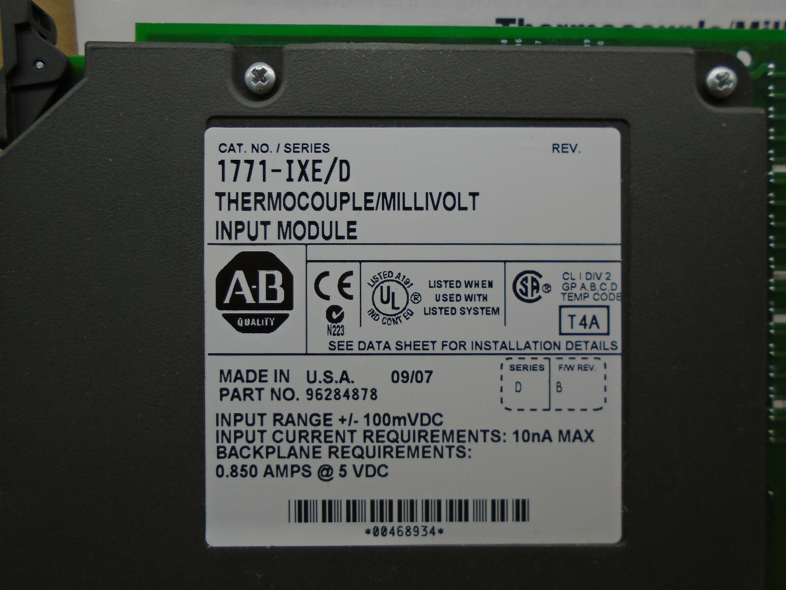 как выглядит 1771-IXE /D Allen Bradley Thermocouple/Millivolt Module 1771IXE N120 фото