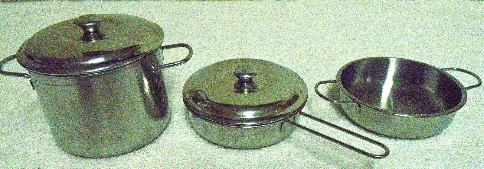 TOY METAL COOKWARE POTS, PANS, LIDS UTENSILS G
