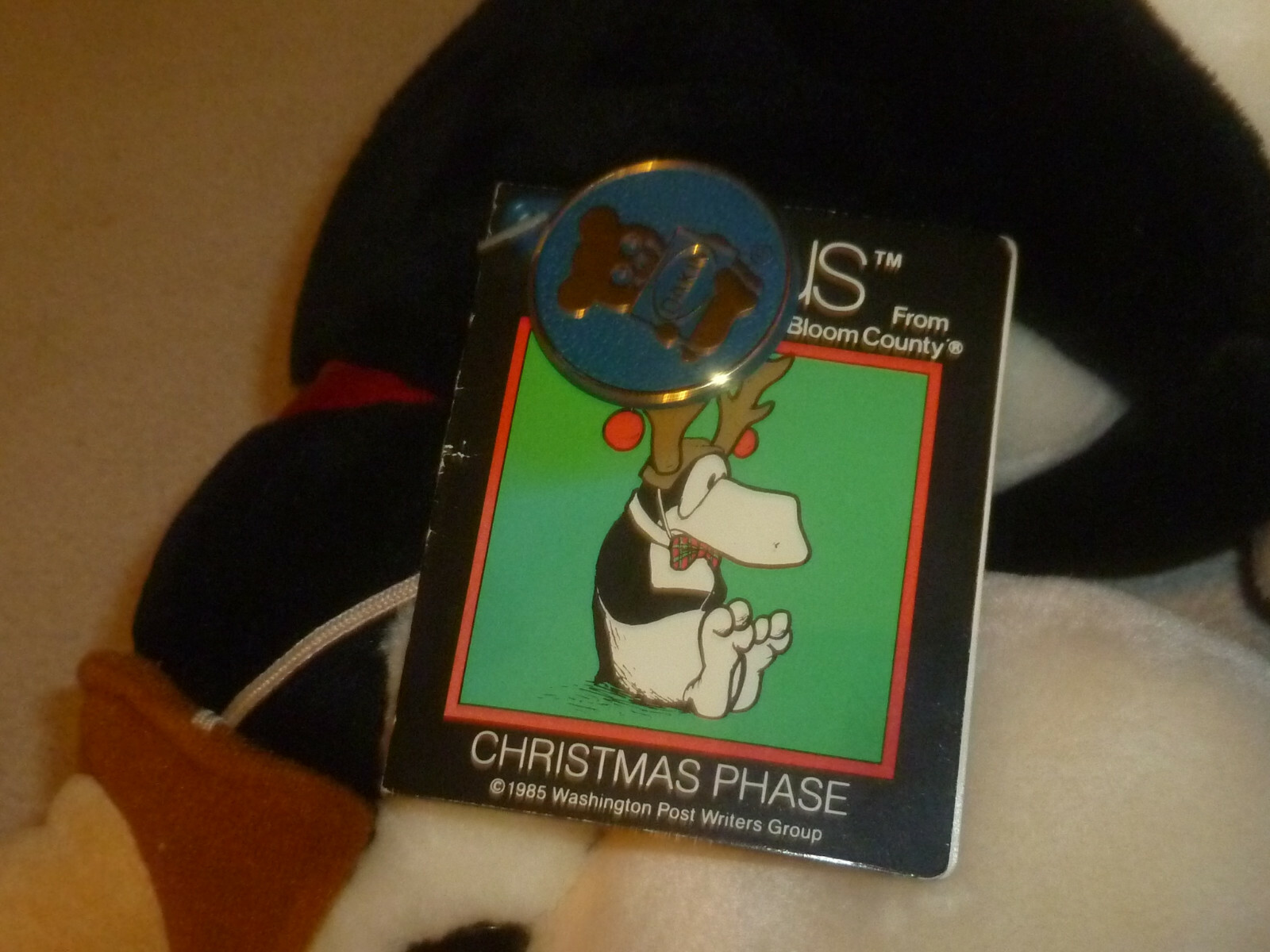 как выглядит PLUSH 15" PENGUIN BLOOM COUNTY OPUS 1985 DAKIN CHRISTMAS REINDEER VINTAGE NWT фото