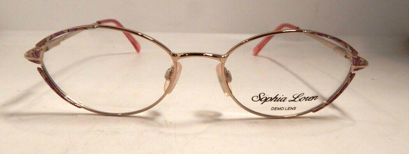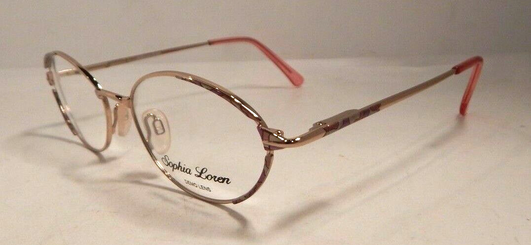 Vintage SOPHIA LOREN M104 Rose Collage/Gold 50/18 Eyeglass Frame NOS 396