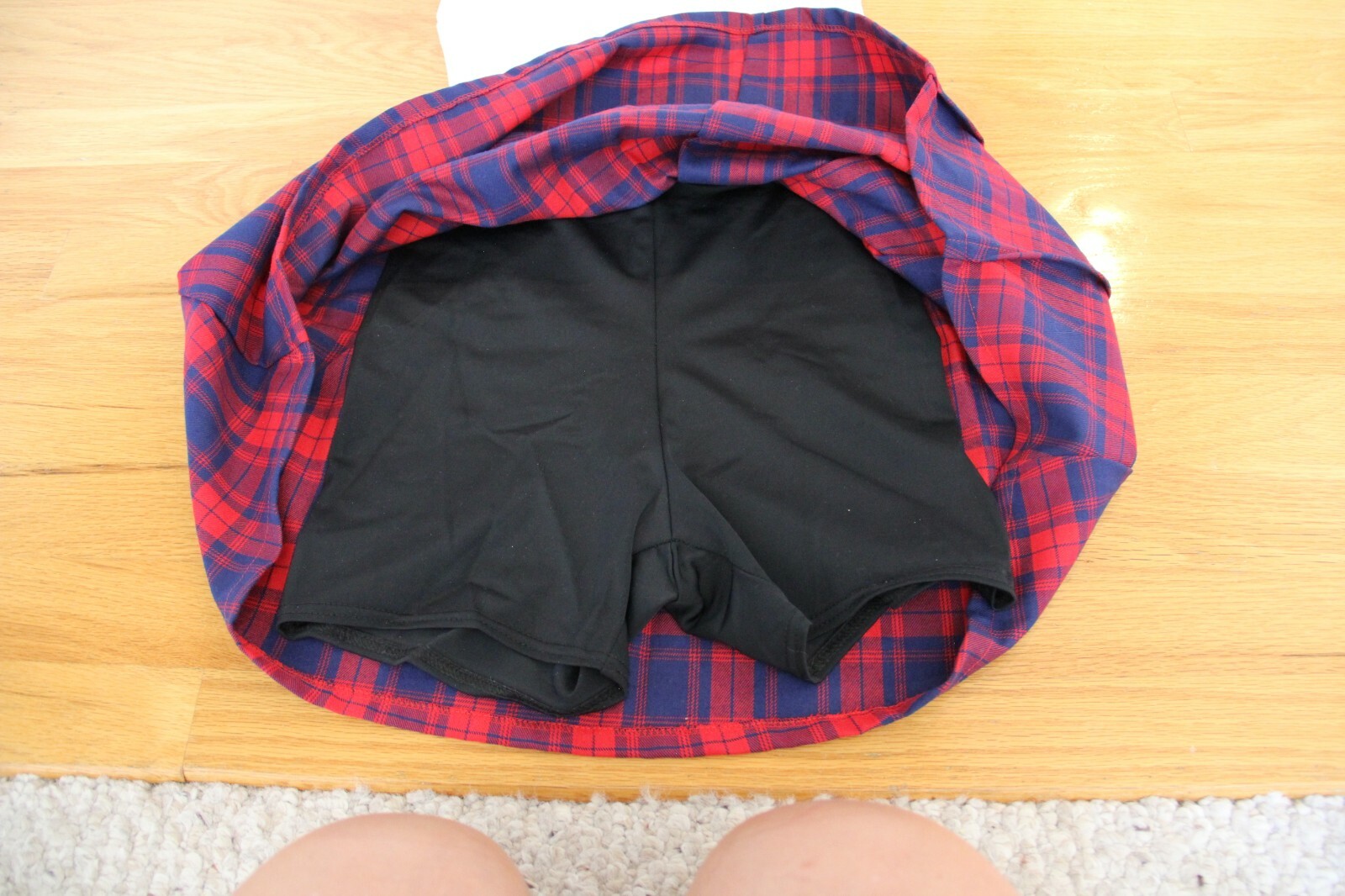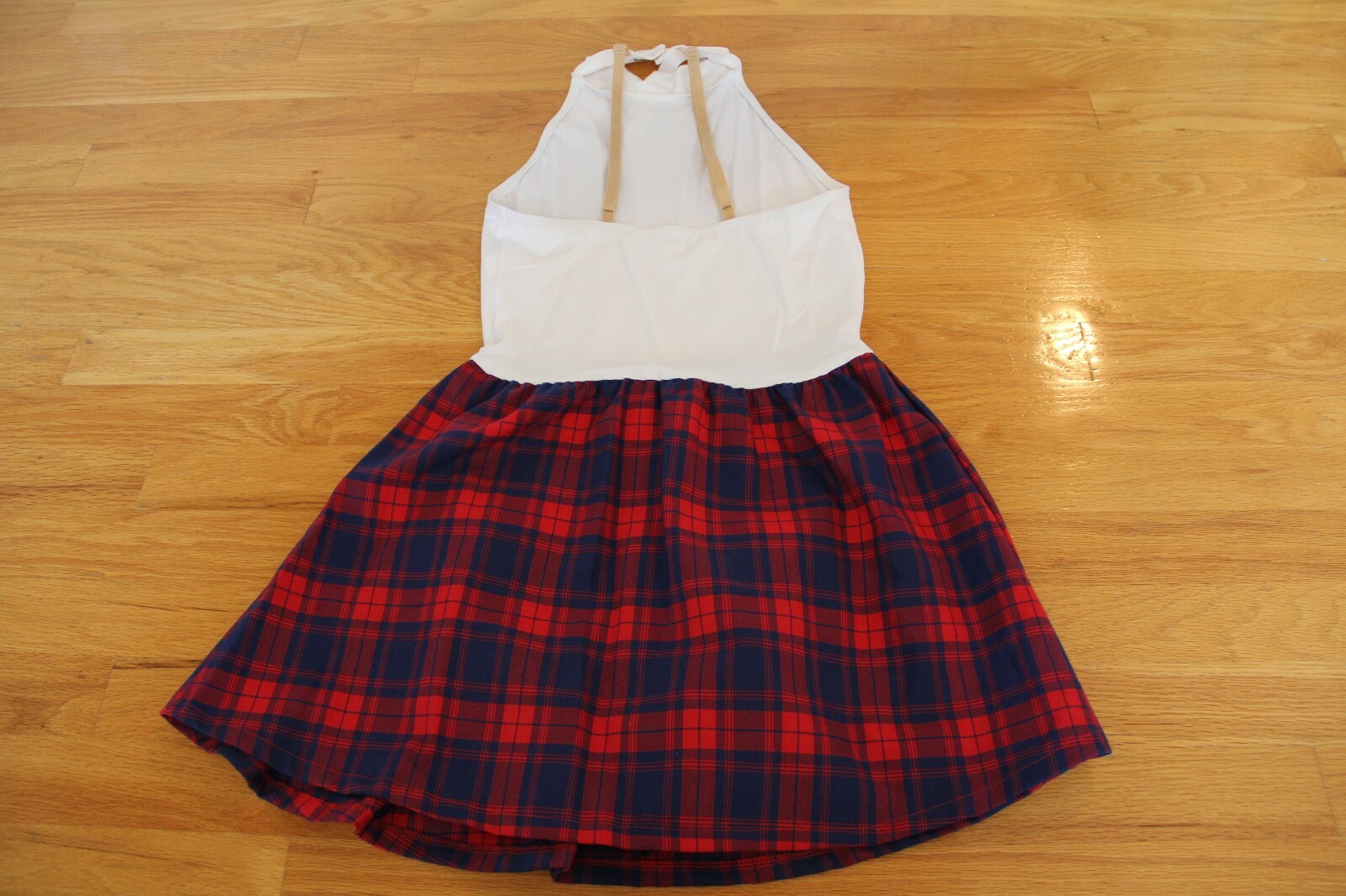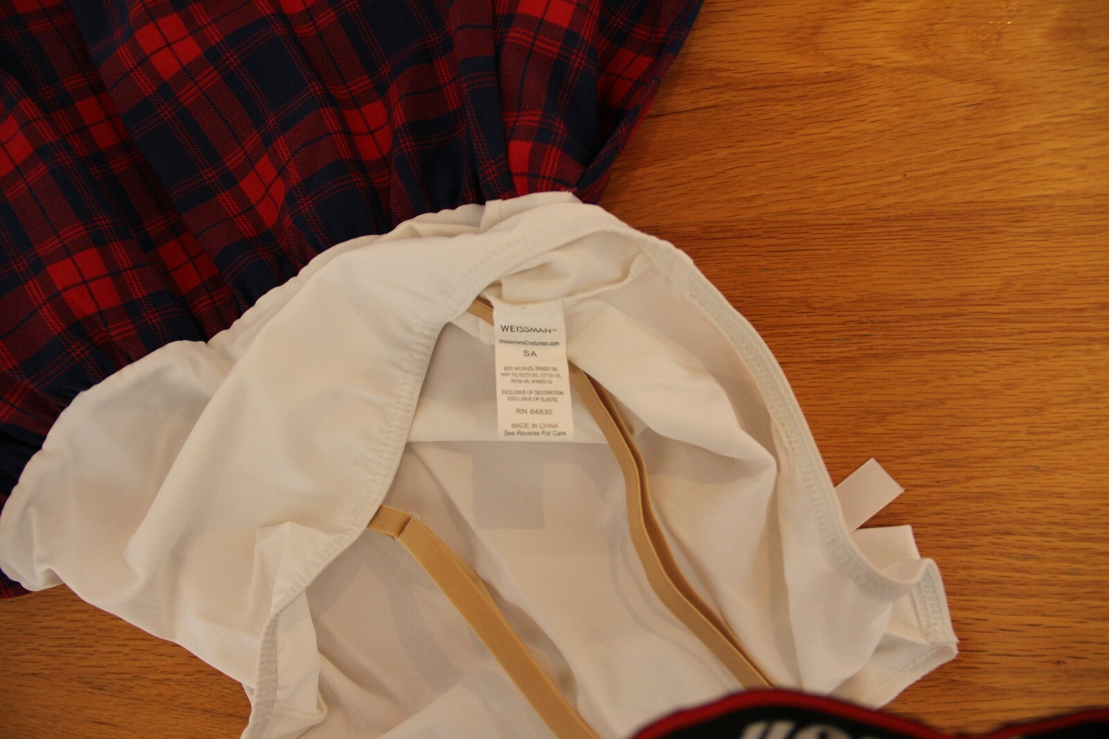 как выглядит Weissman Dance Costume Blue Jean Red Sequin Jacket Letterman Plaid Skirt фото
