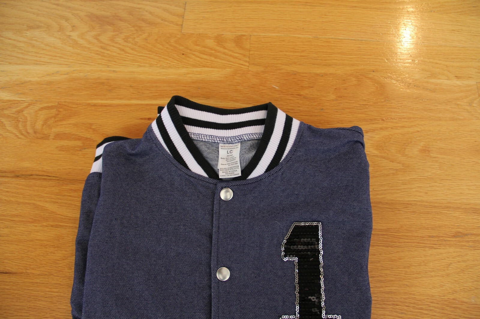Weissman Dance Costume Blue Jean Red Sequin Jacket Letterman Plaid Skirt