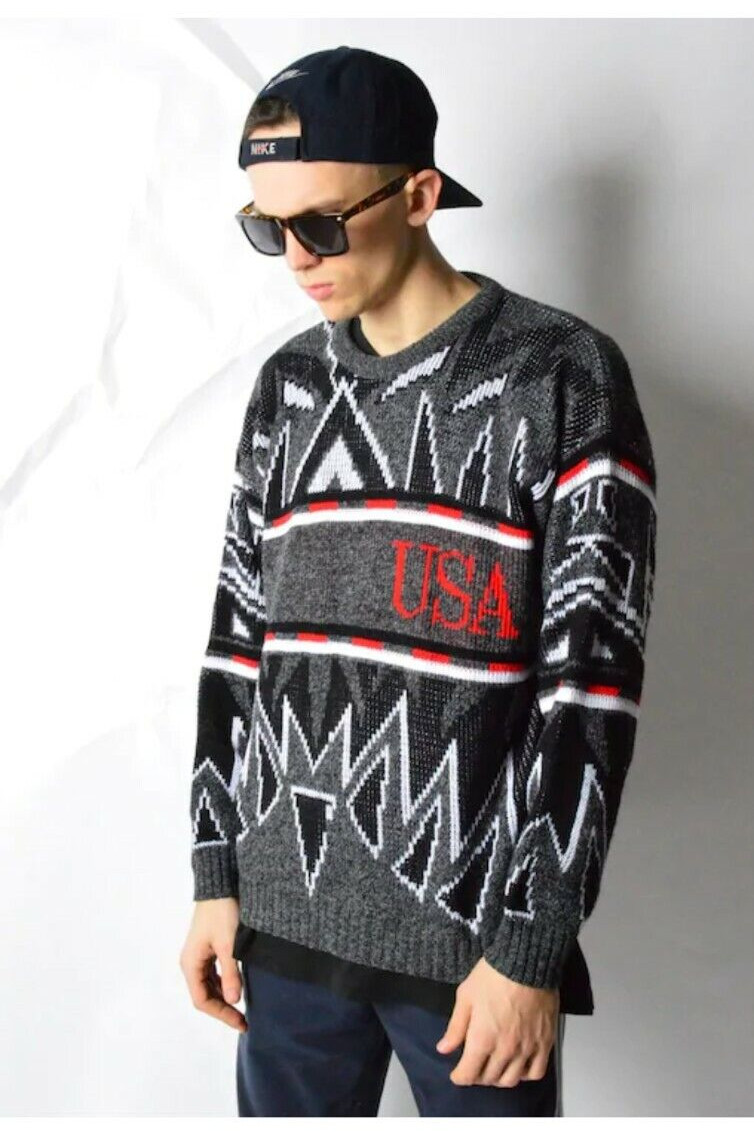 как выглядит Vintage 80s 90s abstract knitwear USA jumper Men