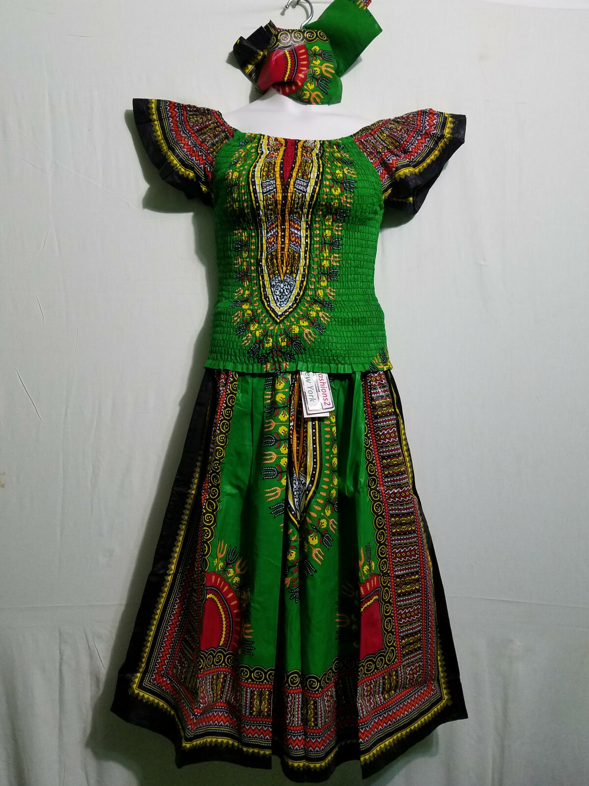 Women Clothing African Dashiki Print Skirt Suit Elastic Waist Bust Free Size