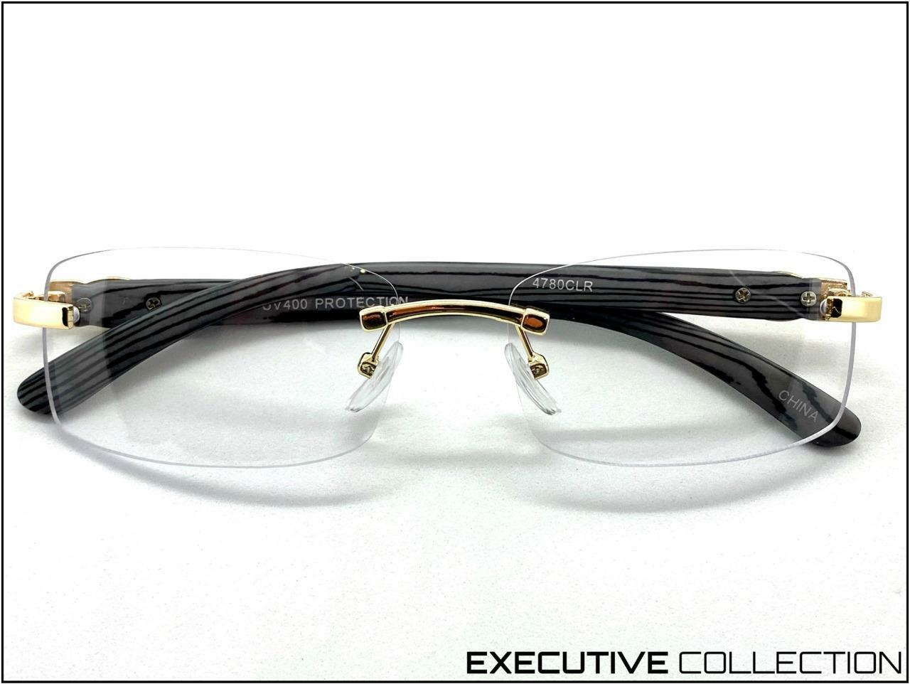 Mens CLASSY SOPHISTICATED ELEGANT Clear Lens EYE GLASSES Rimless Gold Wood Frame