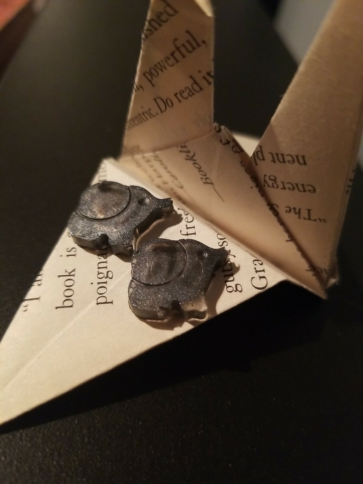 Handcrafted Earrings 13mm Stud Opaque Gray Cute Baby Elephants Sparkling