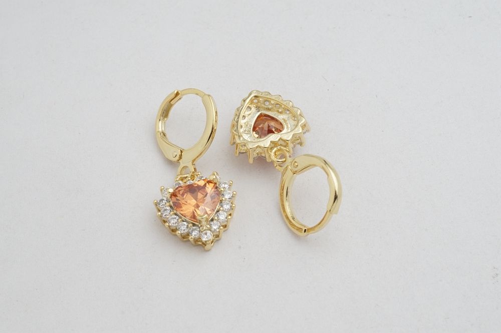 как выглядит Pretty New Yellow Gold Plated Champagne Heart CZ w/Accents Dangle Drop Earrings фото