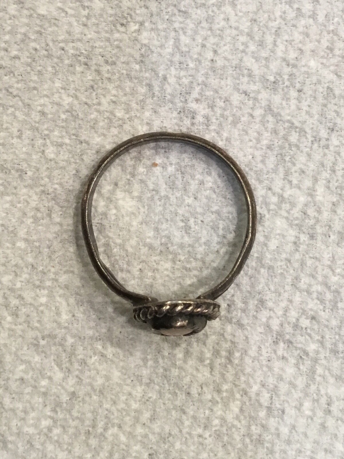 как выглядит Vintage Artisan Crafted Silver Tone Pink Accent Ring Size 6 H12 фото