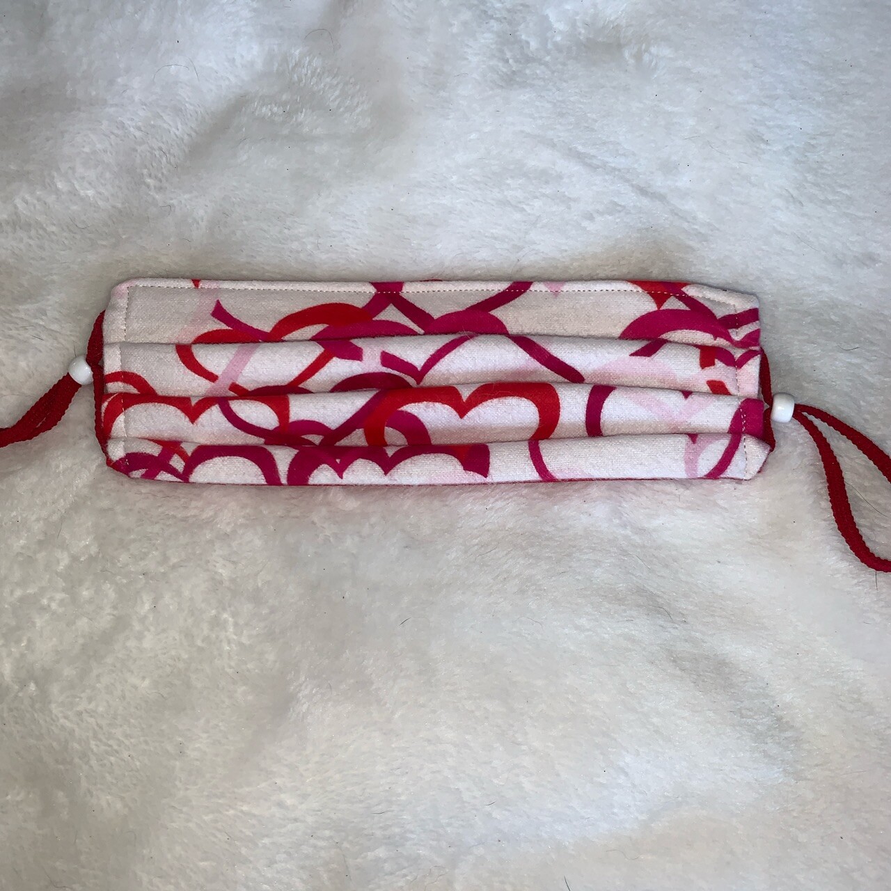 One Size Fabric Washable Reversible Face Mask Valentine's Hearts White Red Pink