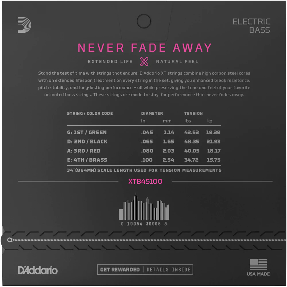 D'Addario XTB45100 XT Regular Light Nickel Plated Bass Strings, 45-100