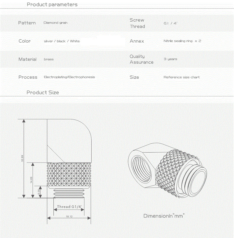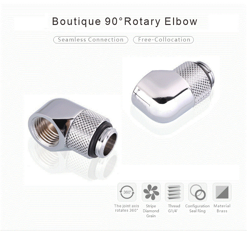 как выглядит 90 Angled 90 Degree G1/4 Rotary Fitting Male to Female for Water Cooling Black фото