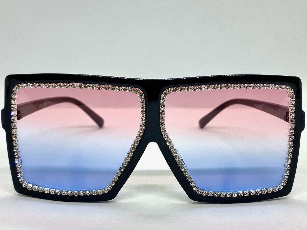 Oversized Classy Elegant Retro Shield SUN GLASSES Square Frame Blue Pink Lens