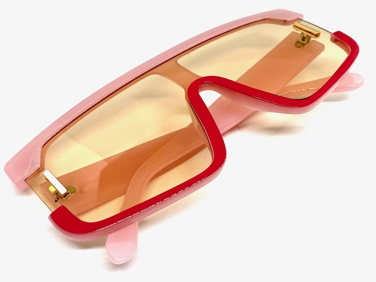 Oversized Classy Elegant Retro Shield Style SUN GLASSES Large Pink Red Frame