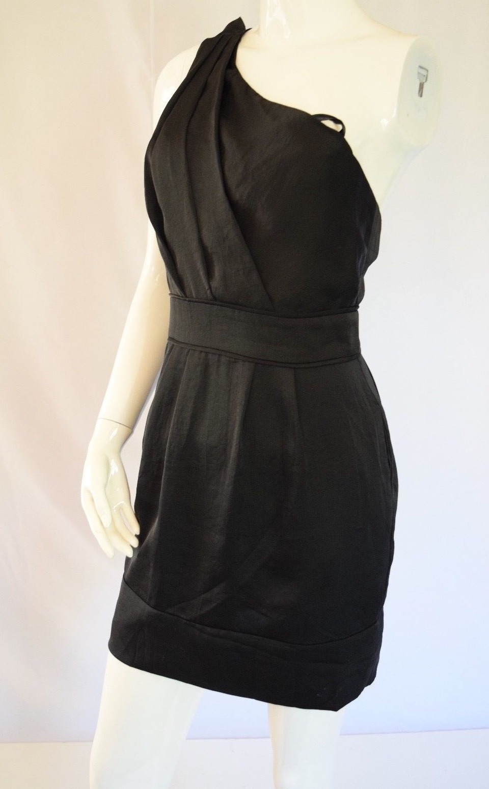 NEW BCBG BCBGeneration DRESS One-Shoulder Satin Women SZ 0 in Solid Black